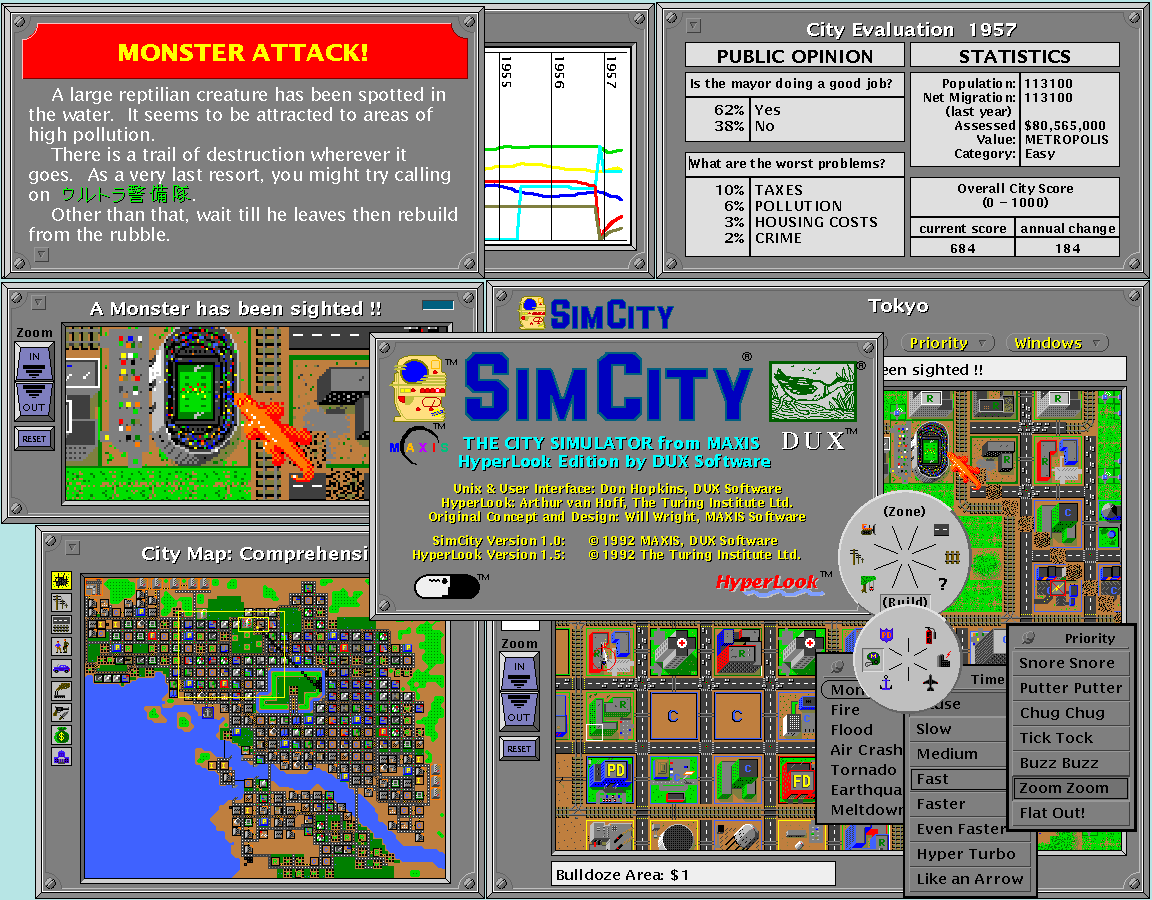 You could download the fully functional demo via ftp from ftp.uu.net, but it melted your city after a few minutes. Then you could buy a license key over the phone via an 800 number with your credit card and immediately unlock it, and they'd optionally mail you a box with a floppy and printed manual for an additional charge. There weren't any https or many http web servers at the time, and it was unwise to send your credit card number via email.